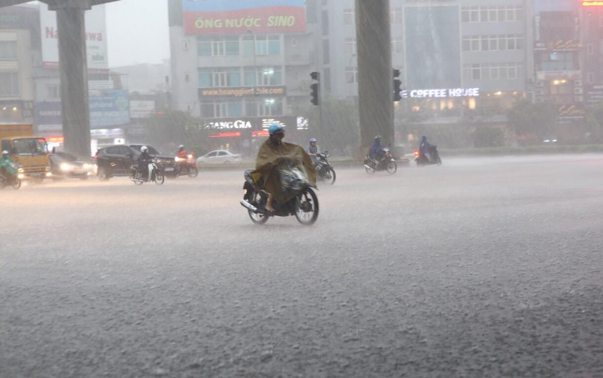 Vào khoảng 16h cùng ngày, tại địa bàn thành phố Hà Nội, trời mưa lớn khiến nhiều tuyến đường mênh mông nước.