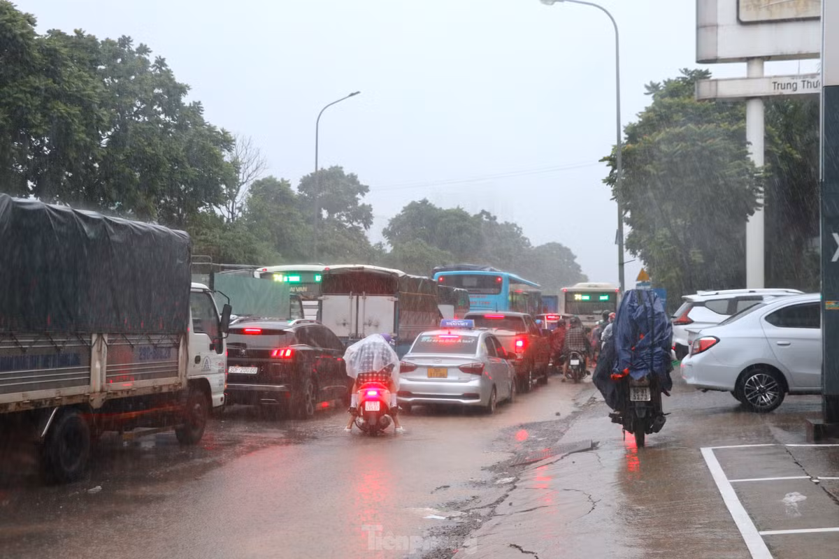 Nhiều đoạn, dòng xe cộ nhích từng tí một trên đường trong cơn mưa nặng hạt kéo dài.