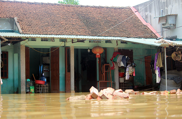 Trong khi đó, nhiều khu vực các ngôi nhà cấp 4 vẫn đang bị nước ngập lên tới mái nhà.