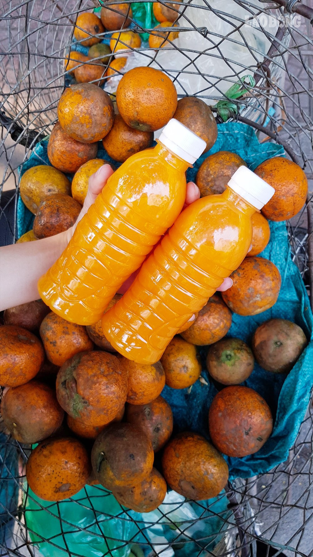 Chị N.M. chia sẻ: “Mỗi ngày tôi bán được từ 150 đến 200 bình nước cam nguyên chất. Thu nhập cao hơn hẳn so với bán cam nguyên quả“.