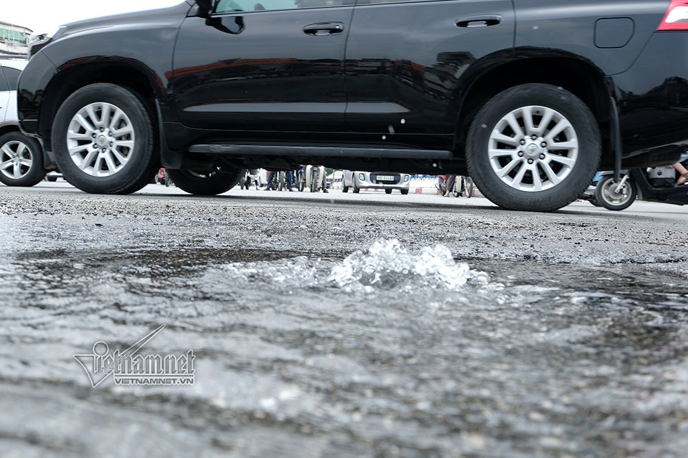 Hà Nội: Nước bỗng dưng phun lên từ mặt đường