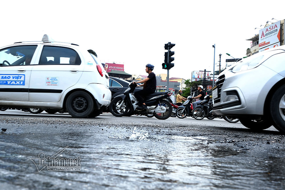 Vũng nước chảy mạnh trên tuyến đường trung tâm vẫn chưa được khắc phục