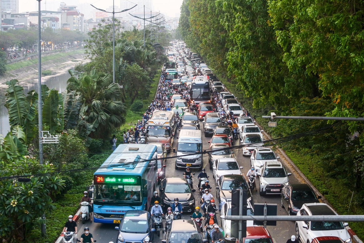 Hà Nội: Xe cộ nhích từng chút giữa cơn tắc đường trước nghỉ lễ