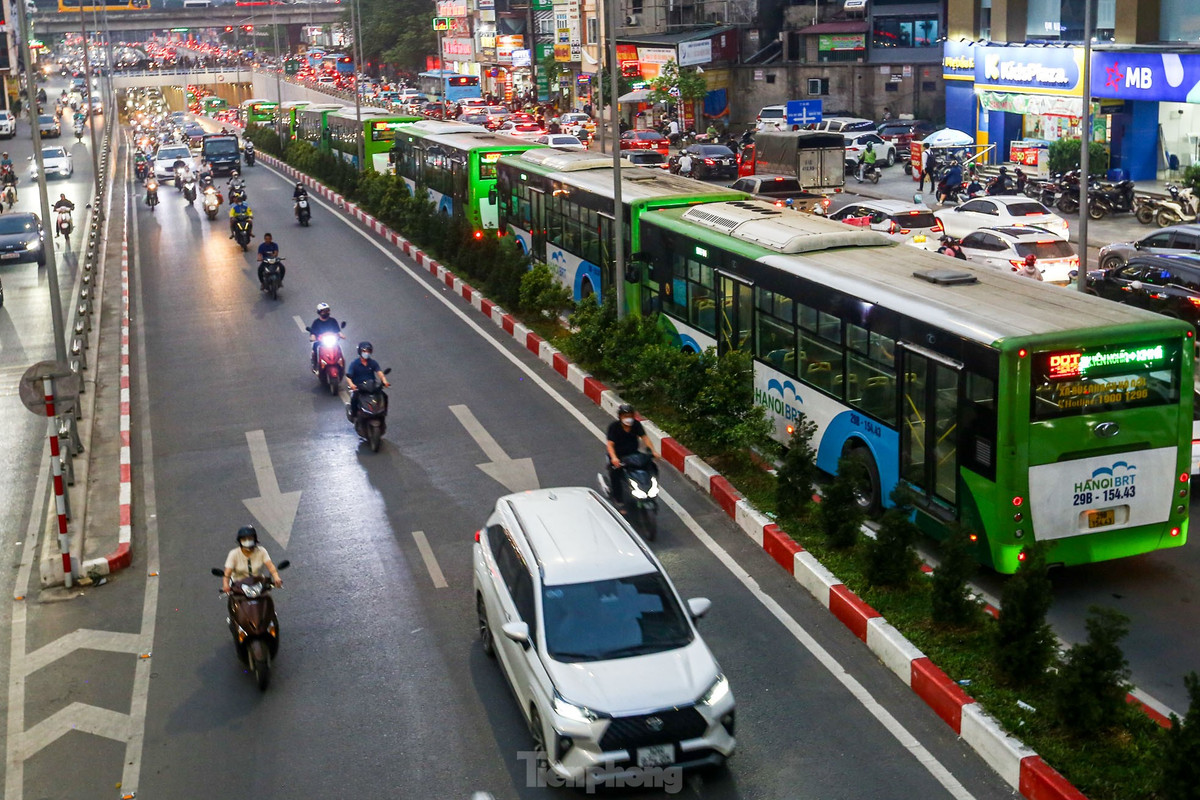 Xuất phát tại thời điểm khác nhau, tuy nhiên hàng chục chiếc xe buýt nhanh đều chịu cảnh "chôn chân" giữa cơn tắc đường ở Hà Nội trước ngày nghỉ lễ.
