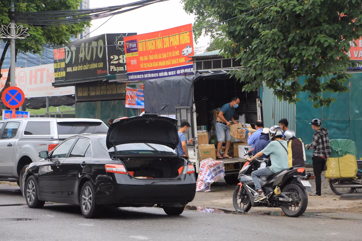 Để né tránh sự phát hiện của cơ quan chức năng, những chiếc xe tải kinh doanh vận chuyển hàng hóa đã núp sâu trong bụi rậm để bốc xếp, trả hàng sai quy định.