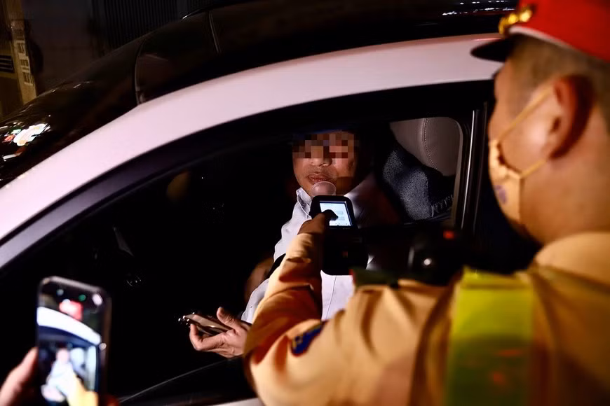Một tài xế xe ô tô bị phát hiện vi phạm nồng độ cồn khi đang di chuyển trên tuyến phố Minh Khai.