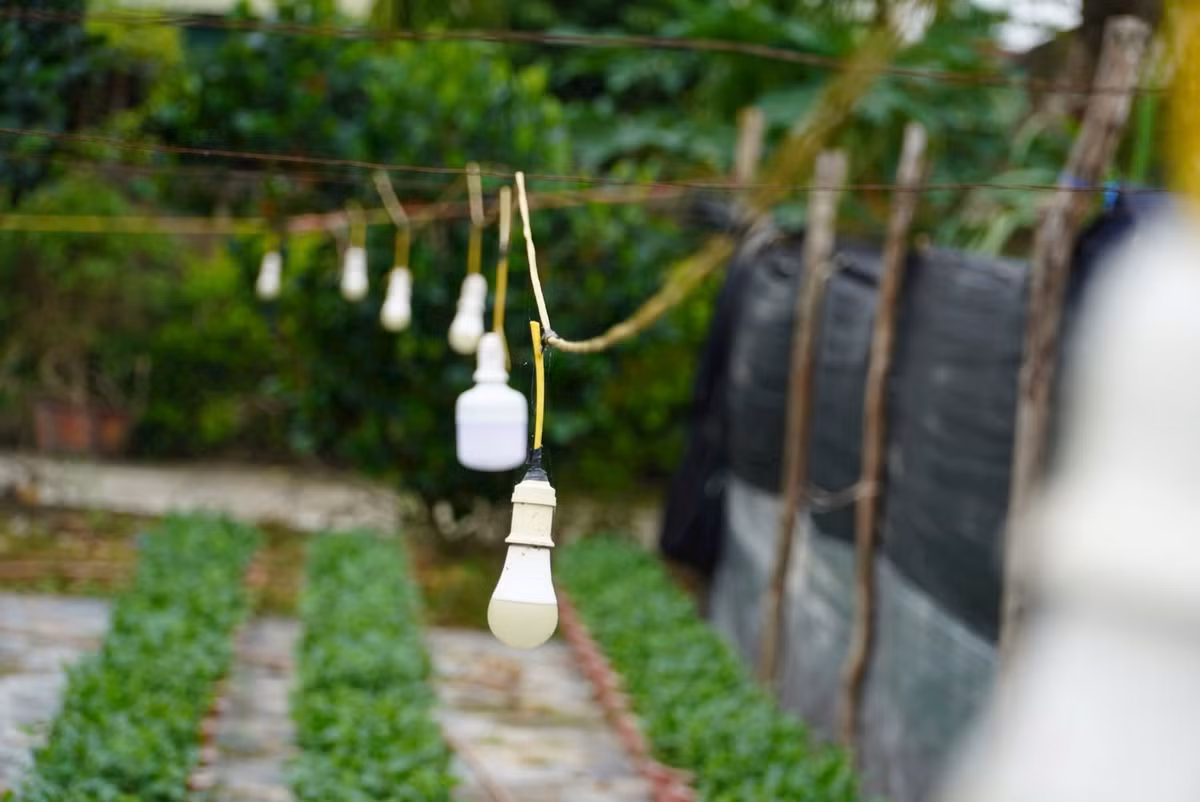 Gia đình ông Biên và nhiều gia đình ở thôn Xuân Sơn đã mạnh dạn đầu tư nhà lưới, cùng với hệ thống đèn chiếu sáng để giúp hoa nở đẹp, phát triển tốt. Ảnh: HN.