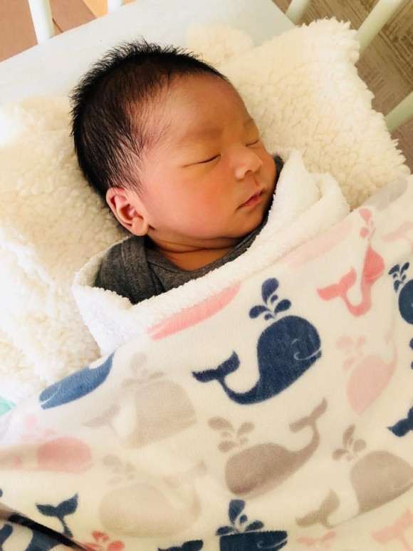 Hình ảnh Hải Băng và con trai mới sinh.