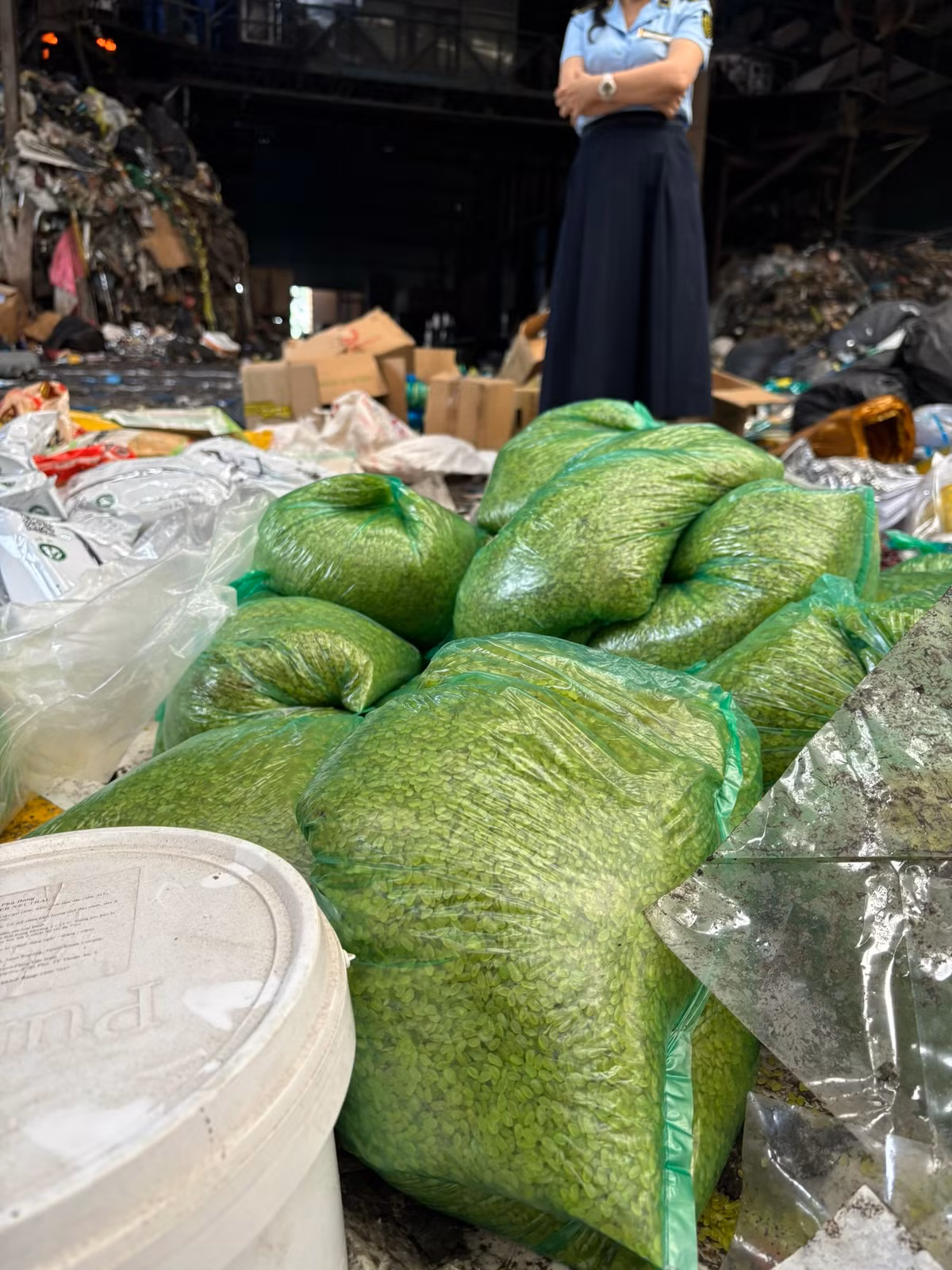 Cùng với số thực phẩm kém chất lượng là số lượng lớn các sản phẩm thực phẩm nhập lậu, không rõ xuất xứ như trà khô, sữa chuối, nước cốt dừa, trà sữa dạng bột, cốm khô... chủ yếu được sử dụng để làm bánh ngọt, pha chế các loại trà sữa... cũng bị buộc tiêu hủy. Việc tiêu hủy được thực hiện ở Công ty Môi trường xanh Minh Phúc (Bình Giang, Hải Dương).