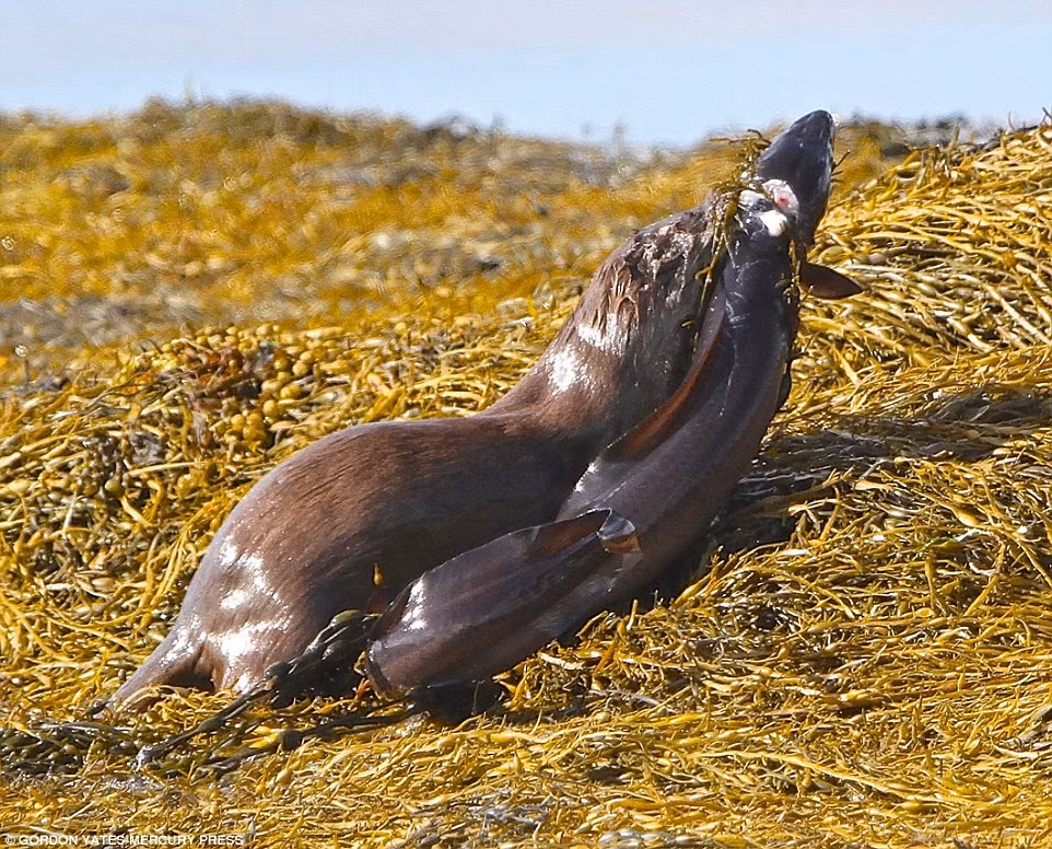 Cảnh tượng con rái cá chén thịt cá chình khổng lồ đầy hãi hùng được nhiếp ảnh gia Gordon Yates, 69 tuổi chụp được ở ngoài khơi bờ biển phía Tây của Scotland.