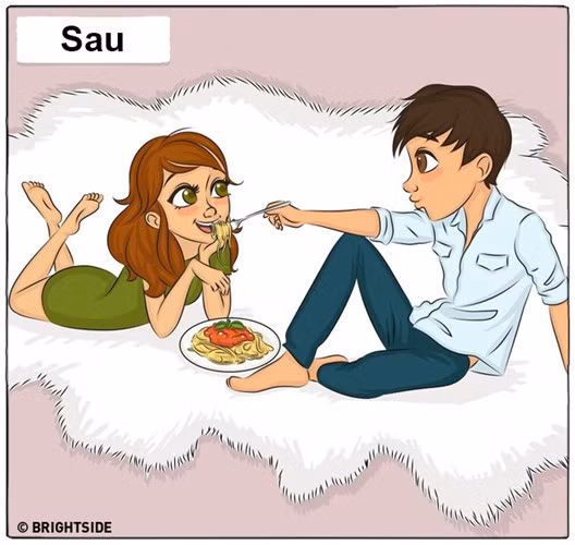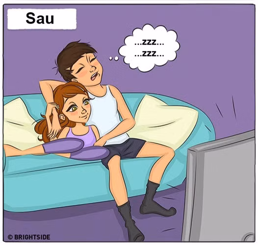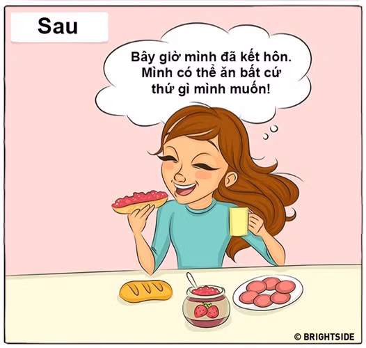 Dưới đây là những tình huống quen thuộc nhưng không kém phần hài hước khi so sánh cuộc sống của một cặp đôi trước và sau khi kết hôn.