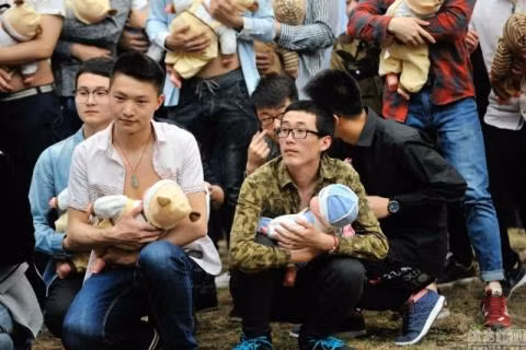 Nhân kỉ niệm ngày của mẹ, nam giới tại Cáp Nhĩ Tân đã tổ chức cho con bú tập thể để bày tỏ lòng biết ơn đến đấng sinh thành.