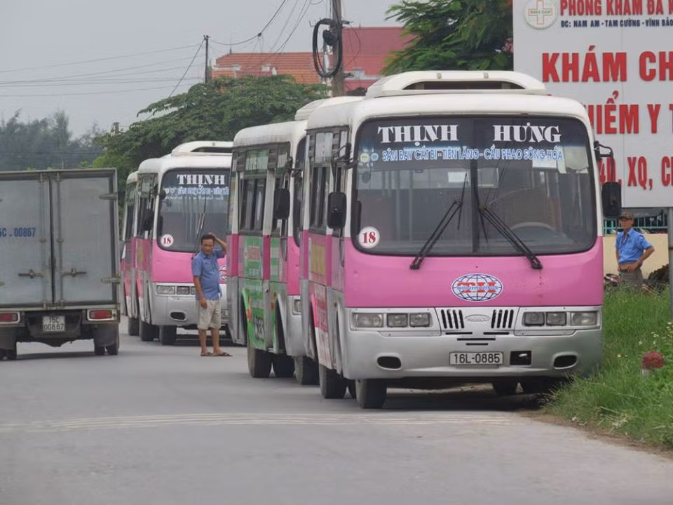 | Xe của HTX vận tải Quang Vinh đối đầu với đoàn xe buýt của Công ty Thịnh Hưng. |