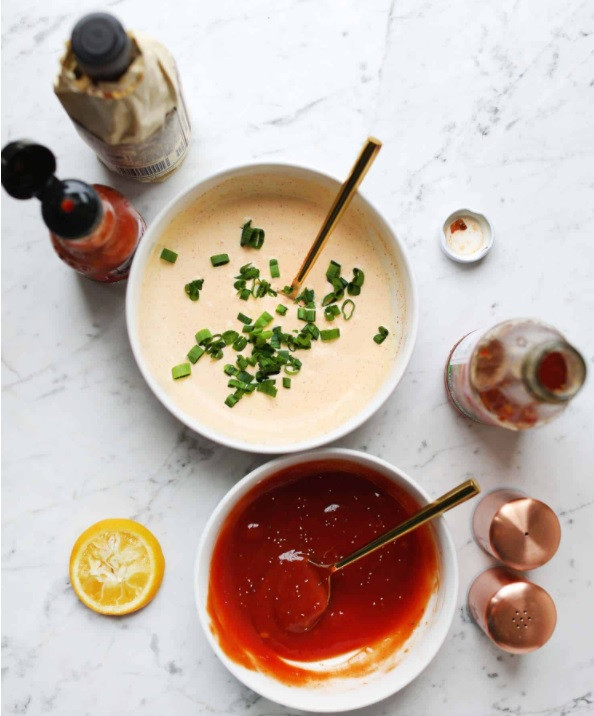 Cách làm: Đối với cả 2 loại nước sốt, bạn chỉ cần đánh đều tất cả các nguyên liệu đã chuẩn bị lại với nhau. Đánh đều tay để tạo thành hỗn hợp nước sốt sánh mịn. Muối và hạt tiêu sẽ được nêm nếm sau cùng tùy theo khẩu vị của cá tc thành viên trong gia đình.