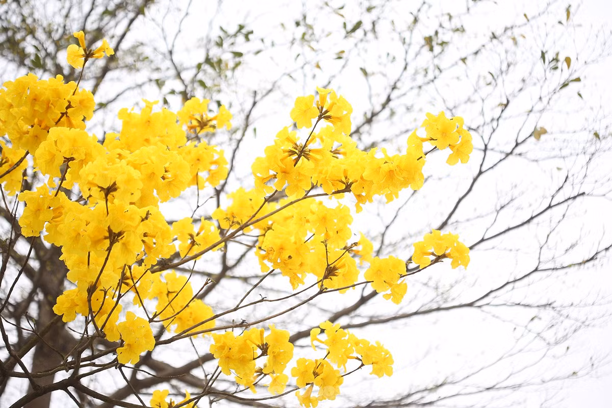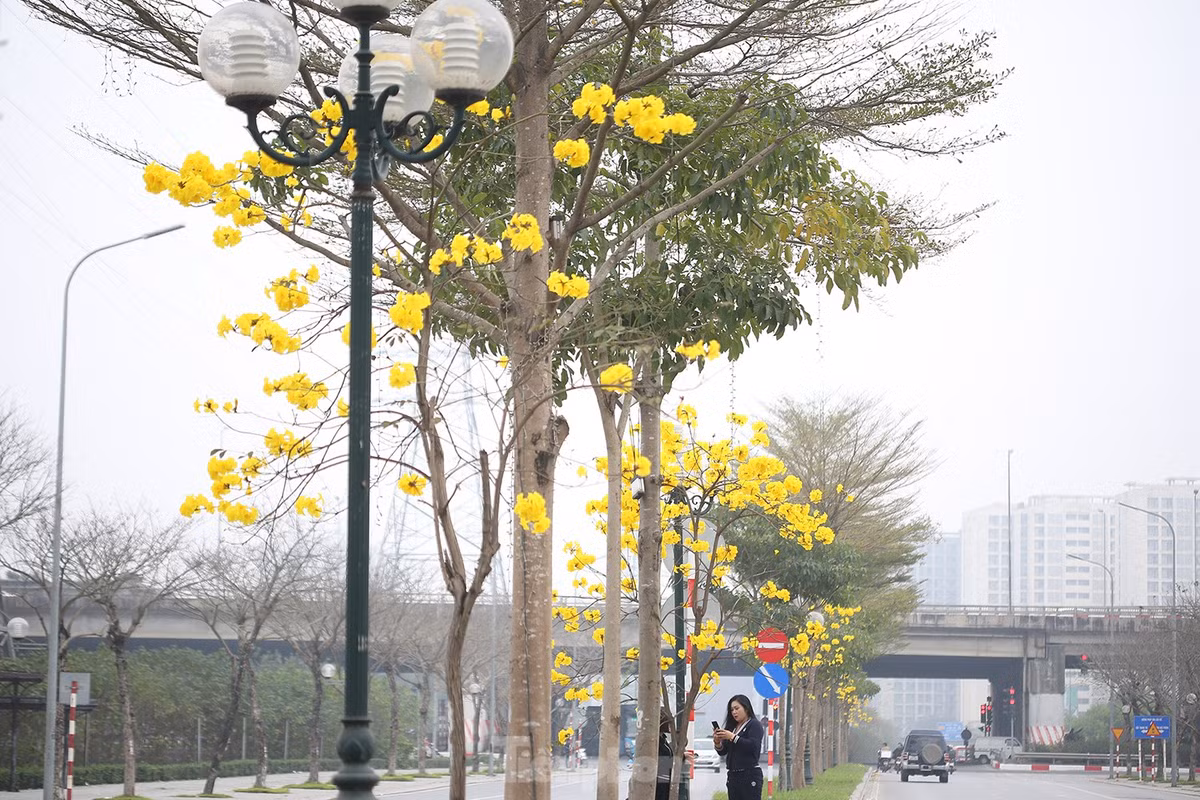 Hàng cây hoa vàng rực rỡ giữa mùa Xuân Hà Nội
