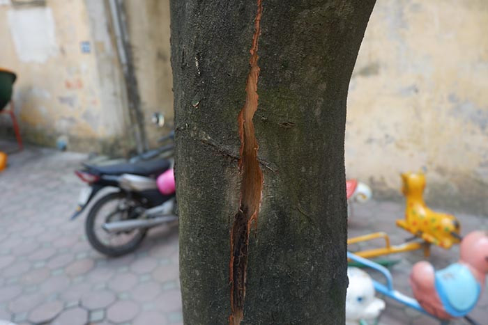 Nghi bị đầu độc bằng hóa chất đổ bên dưới gốc cây, người dân tại khu tập thể đã cùng nhau đào đất ở phần gốc xung quanh và tưới nhiều nước giúp cho cây khử độc.