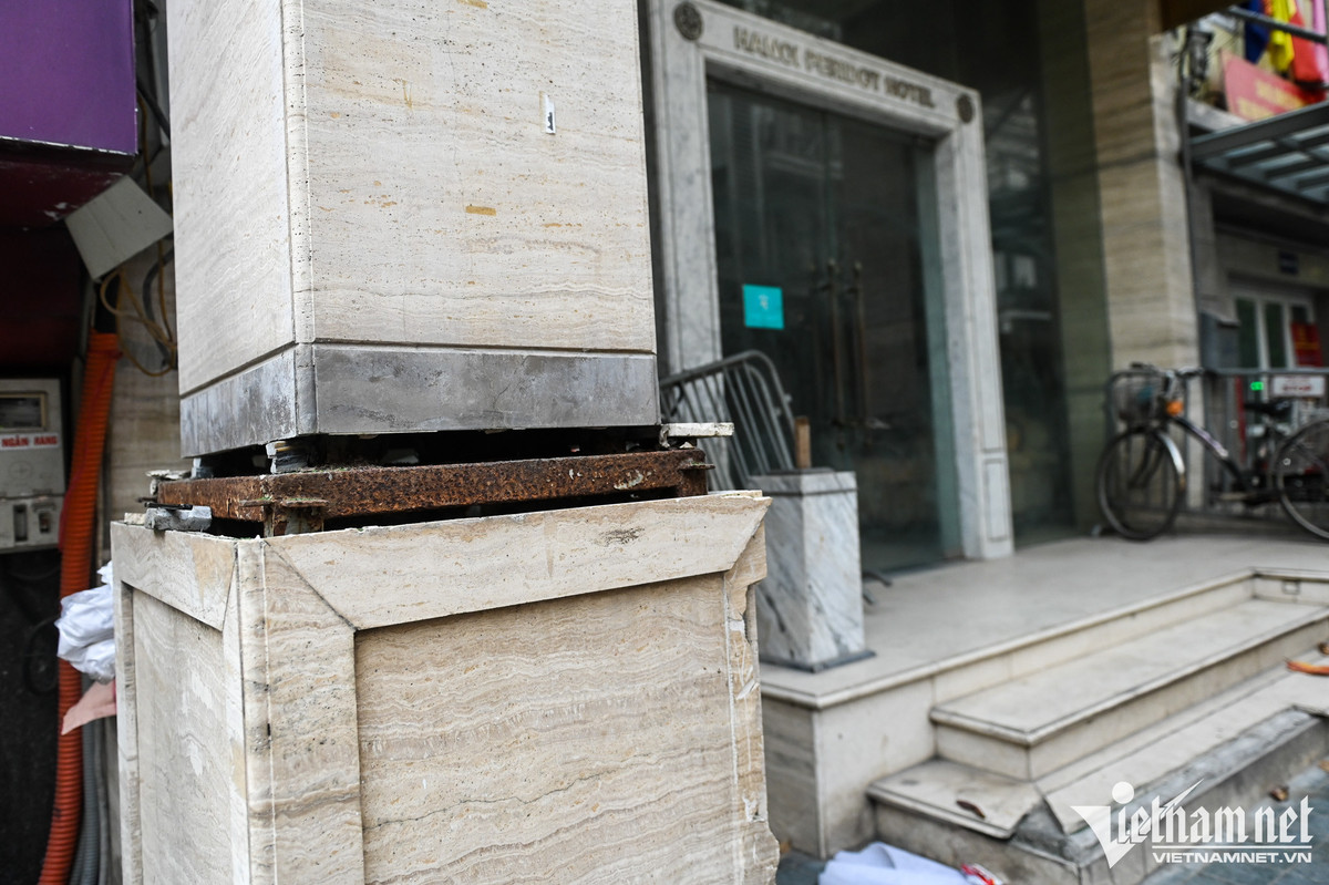Nơi từng là khách sạn trên phố Bát Sứ, các mảnh tường bong tróc lộ cả khung sắt hoen gỉ do lâu ngày không được sử dụng.
