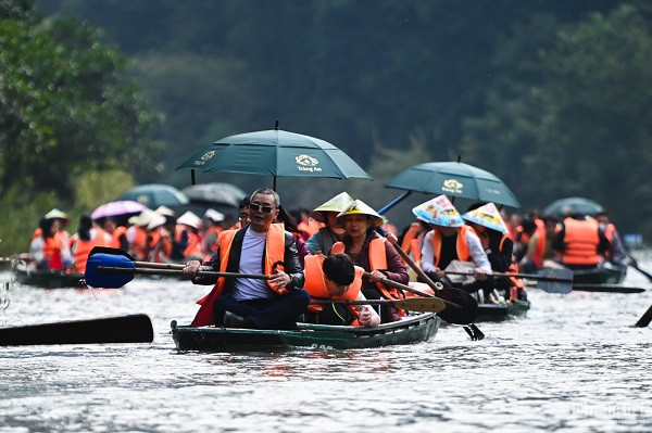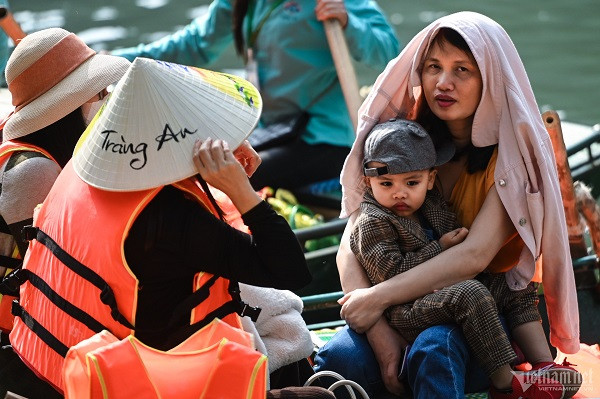 Hàng nghìn du khách ngồi thuyền đội nắng du xuân Tràng An