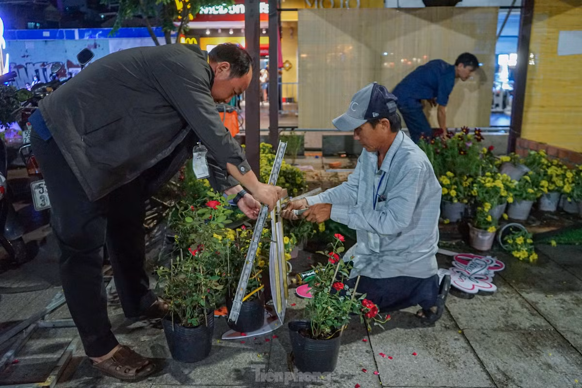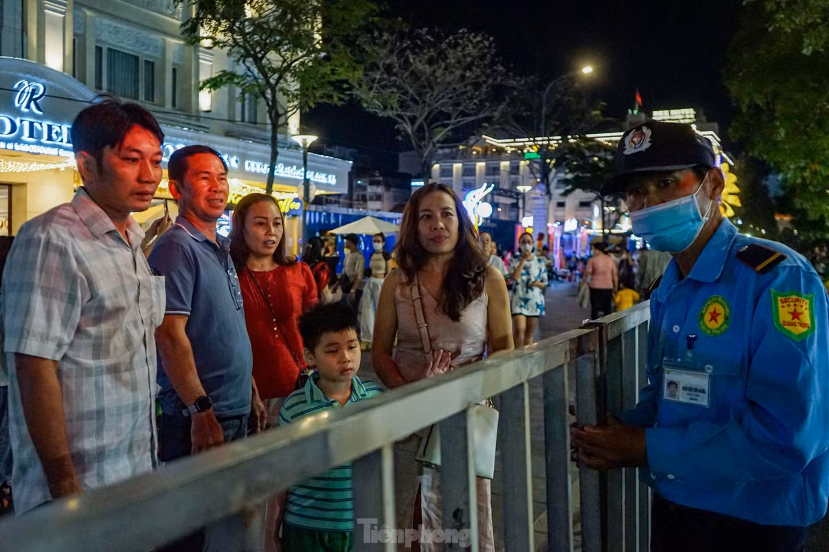 Đúng 21h, lực lượng bảo vệ của đường hoa lần lượt phát loa thông báo đến giờ đóng cửa. Bên ngoài, các khu vực ra vào đường hoa đều lần lượt được kéo rào chắn.