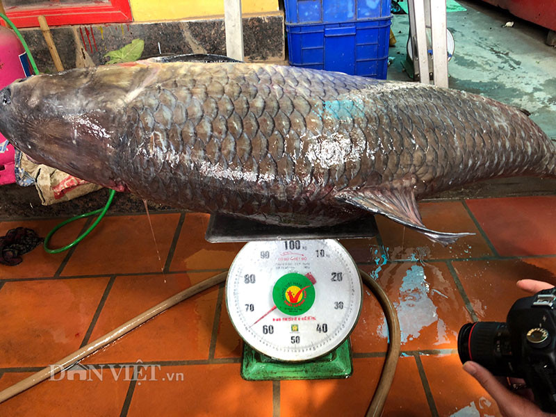 "Con cá này được tôi mua với giá hàng trăm triệu, được di chuyển bằng ô tô ngay từ đêm qua về Thủ đô, đầu giờ tối nay, phải xẻ thịt luôn rồi gửi cho các vị khách đã đặt sẵn. Cả cá và lòng cân được là tròn 65kg", anh Long kể lại.