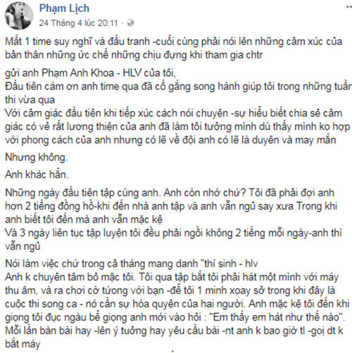 | Phạm Lịch bị anti-fan hăm dọa. |