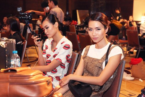 Người mẫu Thu Huyền và Thiên Trang sau cánh gà.