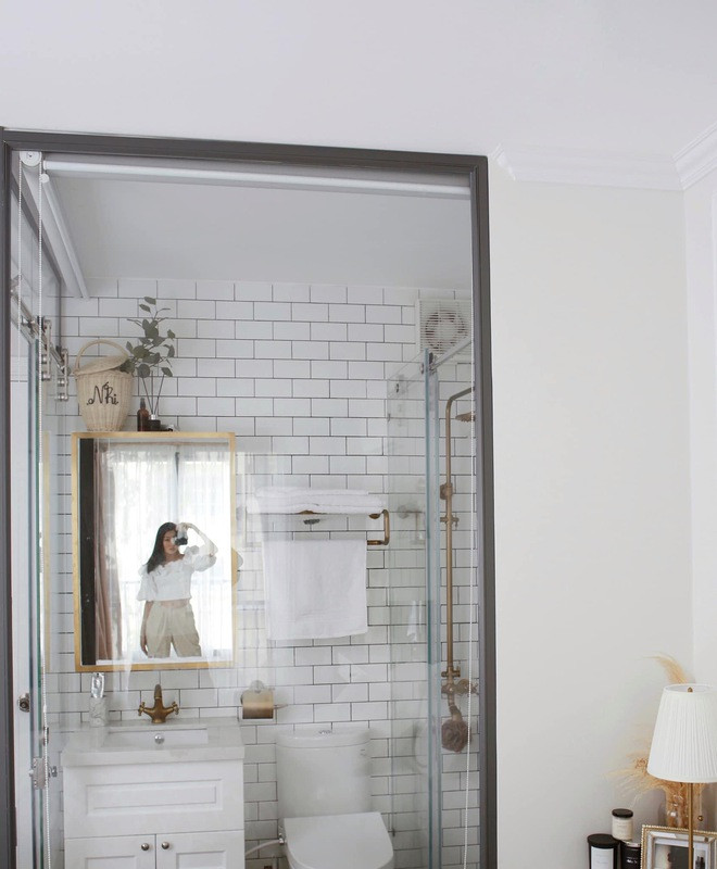Ngắm nhà Thảo Nhi mới biết cô nàng yêu màu trắng đến mức độ nào. Và phòng tắm có lẽ là nơi đặc biệt nhất trong nhà vì được thiết kế rất xinh, rất "nghệ" nữa. Ngoài tông trắng, cô nàng còn nhấn nhá thêm màu vàng đồng để trông bắt mắt, ra chất vintage hơn. Chưa kể, Thảo Nhi cũng chọn gạch ốp màu trắng trung tính, tạo cảm giác sạch sẽ, nịnh mắt
