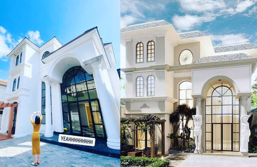 Mới đây, người đẹp còn chia sẻ khoảnh khắc dát vàng trên trần nhà cực kỳ sang chảnh không khác gì trong cung điện. Với góc nhìn từ dưới, những mảnh vàng nhỏ bay tứ tung càng khiến cho căn biệt thự của nữ ca sĩ trở nên lấp lánh và nguy nga. Chỉ một chi tiết cũng đủ thấy sự đầu tư và giàu có của Lệ Quyên ở mức nào. Căn biệt thự của người tình Lâm Bảo Châu mang đậm phong cách châu Âu với hai cột trụ thanh lịch ở phần tiền sảnh. Sân vườn trong căn biệt thự của giọng ca Tình lỡ cũng vô cùng rộng rãi và có kèm theo cả bể bơi.