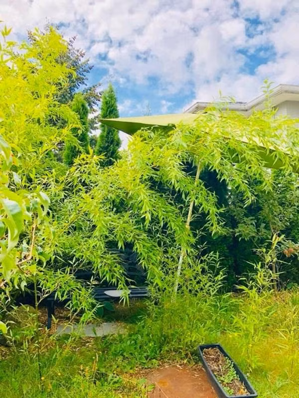 Trước cửa cô làm 1 giàn gỗ để trồng nho.