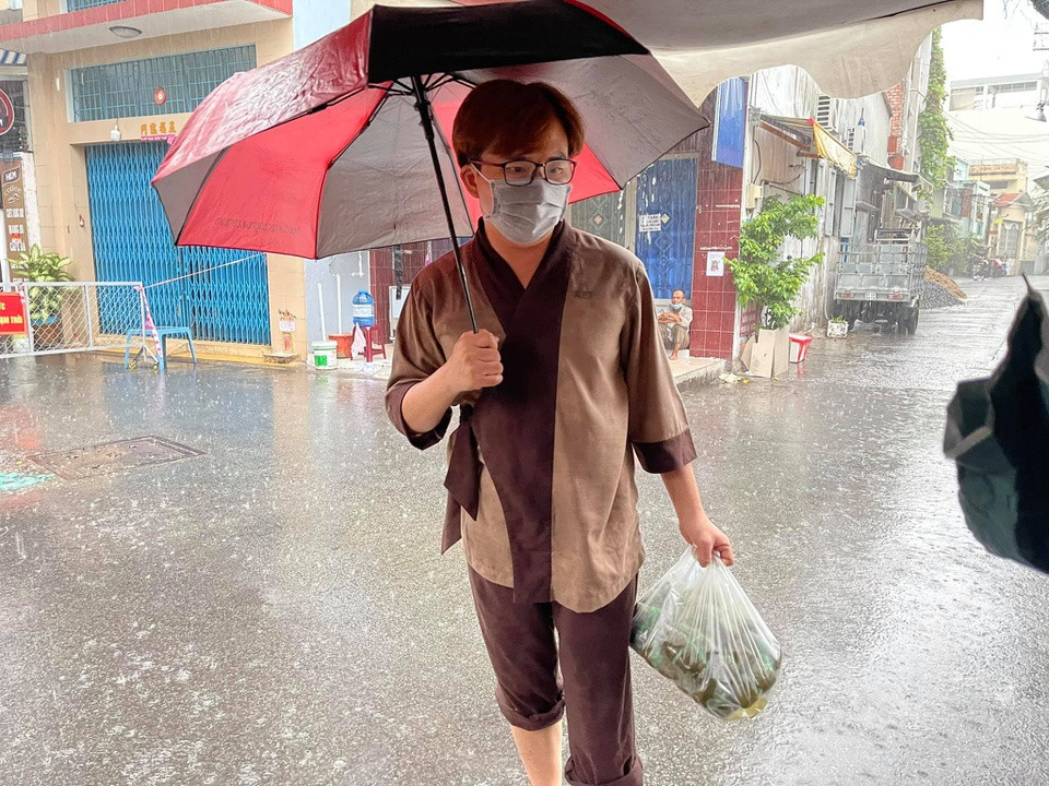 "Tôi không phải thánh thần mà không sợ COVID-19. Gia đình tôi cũng lo lắng. Nhưng càng đi, càng thấy thương nhiều mảnh đời cơ cực đang oằn mình trong đại dịch. Tôi muốn góp sức nhỏ bé cùng mọi người vượt qua khó khăn", anh bộc bạch. Ảnh: NVCC.