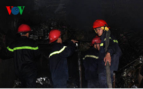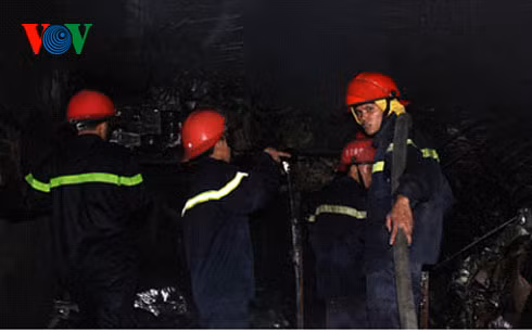 Do chủ kho hàng đóng cửa để về quê, không có ai trông coi bên trong nên các chiến sĩ cứu hỏa phải vất vả dùng búa phá tường, phá cửa để đưa vòi nước vào bên trong chữa cháy.