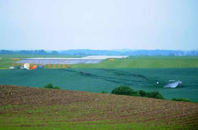 (Kiến Thức) - Máy bay JAS-39 hiện đại của Không quân Hungary hạ cánh chệch đường băng lao ra cánh đồng gần Caslav, Cộng hòa Czech.