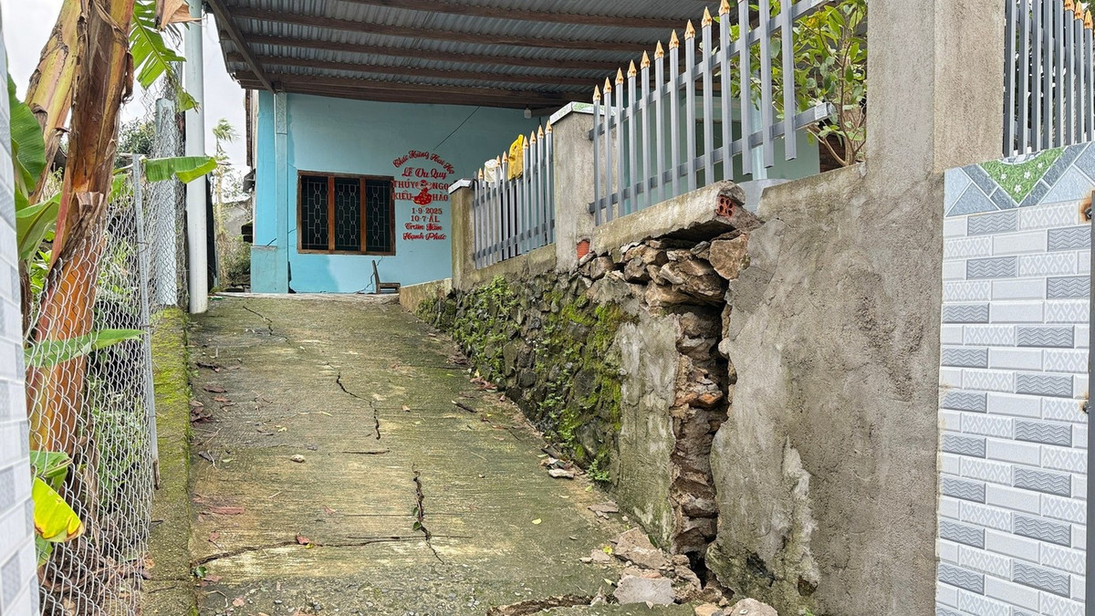 Theo ghi nhận, một số căn nhà , một số nứt tường, bong tróc nền gạch, cổng ngõ và tường rào đổ ngã, thậm chí có căn nhà nứt làm đôi.