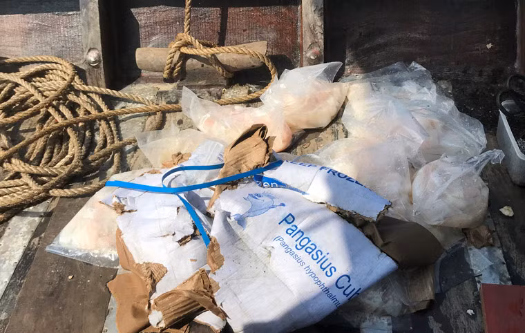 Thùng container chứa cá basa nói trên trôi dạt về hướng bến phà Cát Lái, hàng vạn bao cá basa xuất khẩu trôi cả khúc sông Đồng Nai.