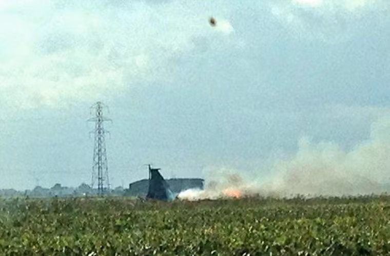 thăng. Tình trạng sức khỏe của phi công đang được đánh giá tại bệnh viện Lakenheath. Trong ảnh, ghế thoát hiểm của phi công sau khi được phóng ra khỏi máy bay.