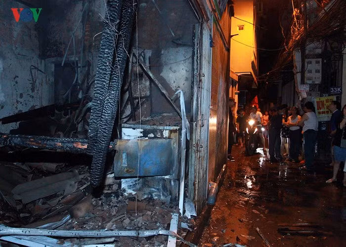 Hiện trường vụ cháy cửa tiệm giặt là ở Thanh Xuân, Hà Nội