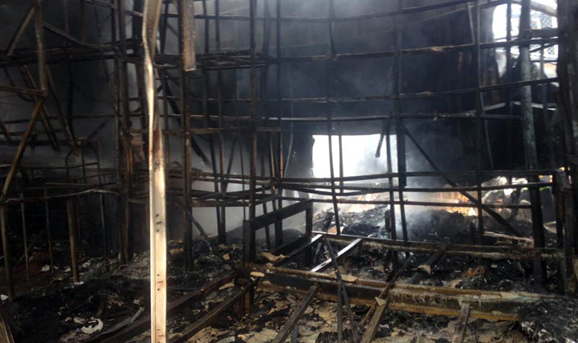 Các đồ đạc, vật dụng bên trong nhà xưởng bị lửa thiêu rụi cháy đen xì.