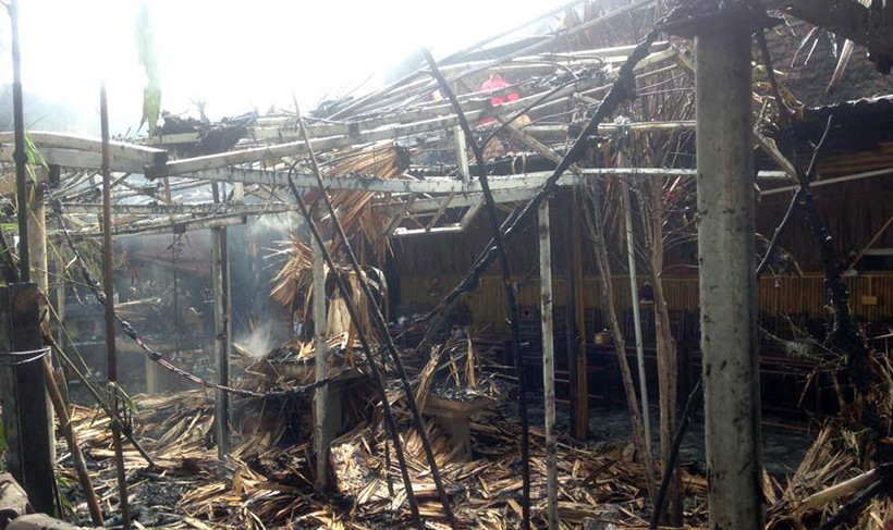 Tàn tro của các đồ vật bị lửa thiêu tại hiện trường.