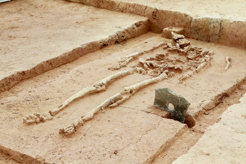 Hiện vật đá được phát hiện tại ngôi mộ. Ảnh: Nguyễn Thanh Sương / ANTG.
