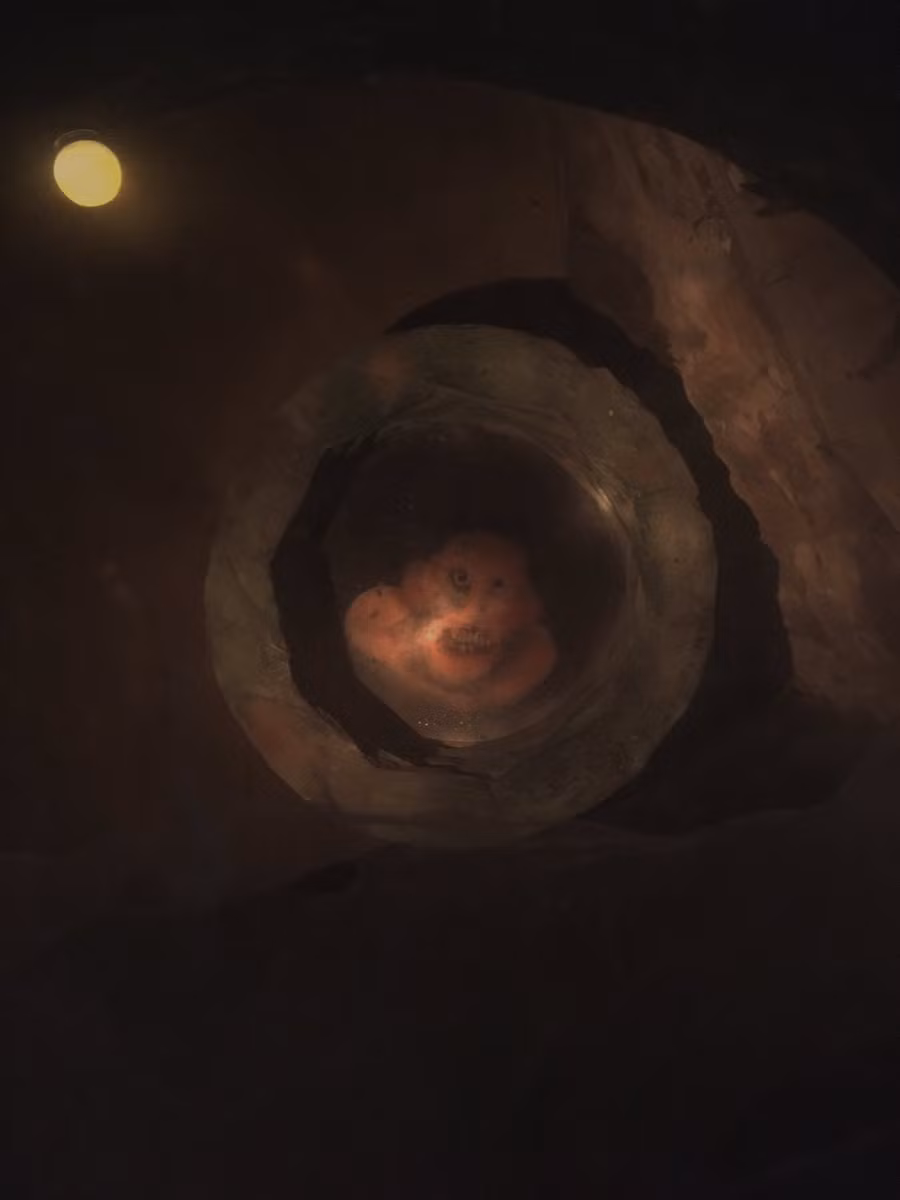 Bức tượng mặt người cũng gây ám ảnh không kém.