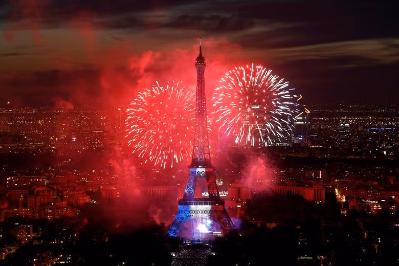 Hình ảnh pháo hoa được bắn ngay tháp Eiffel nhân kỷ niệm 228 năm Quốc khánh Pháp.
