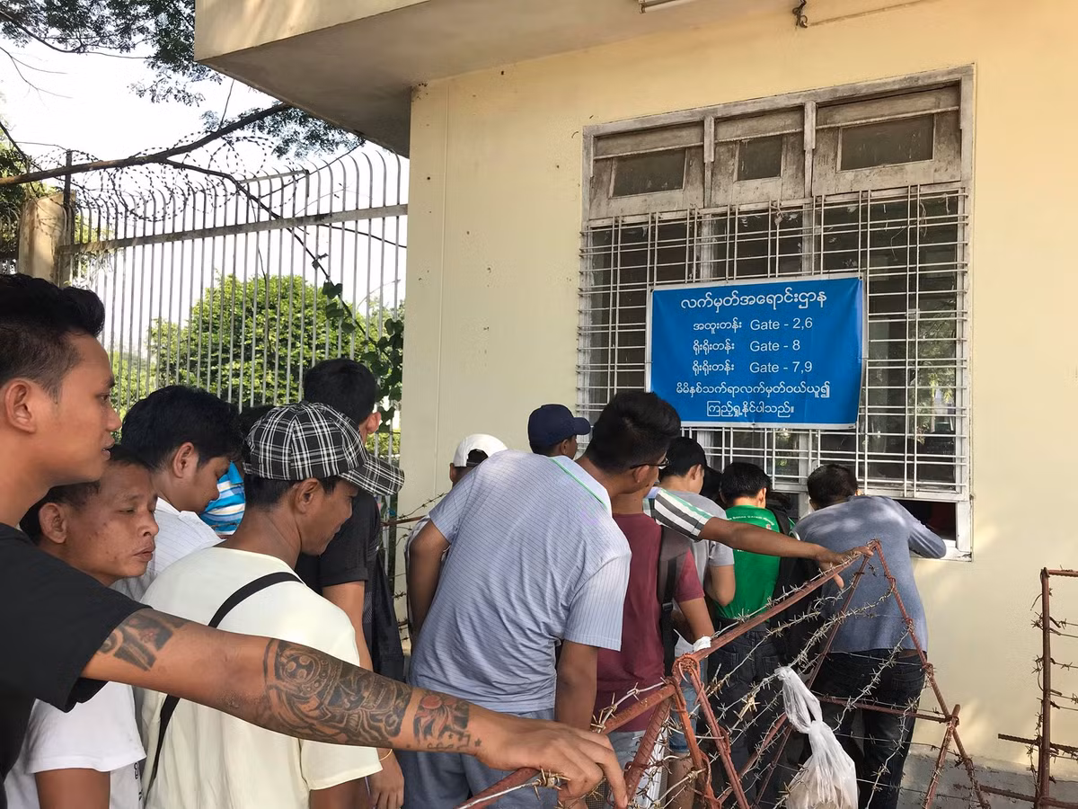 Hình ảnh CĐV Myanmar xếp hàng mua vé AFF Cup chẳng kém Việt Nam
