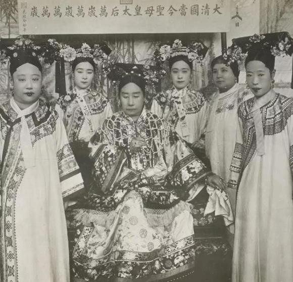Từ Hi Thái hậu (giữa) chụp cùng Long Dụ Hoàng hậu của Hoàng đế Quang Tự (đứng ngoài cùng bìa phải) và Cẩn phi (đứng ngoài cùng bìa trái)