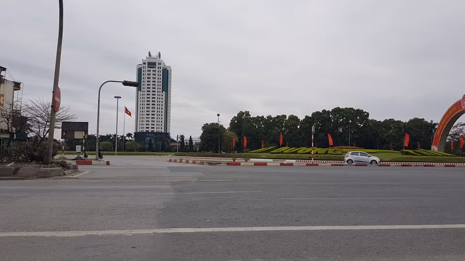 Khu vực ngã 3 Hoàng Long vào Thành phố Hải Dương vắng lặng.