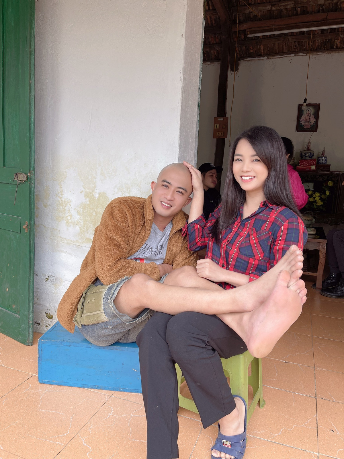 Doãn Quốc Đam cũng vừa chia sẻ loạt ảnh chụp cùng người vợ màn ảnh trên một chiếc chõng che ở bối cảnh phim khiến nhiều khán giả thích thú.