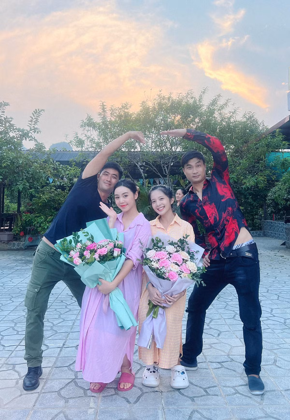 Các diễn viên tạo dáng hài hước khi kết thúc vai diễn.
