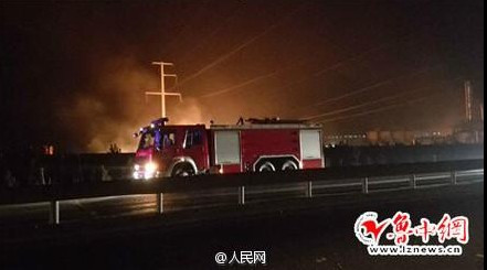 Một lực lượng lớn xe chữa cháy và lính cứu hỏa đã được huy động tới hiện trường vụ cháy nổ ở Sơn Đông.