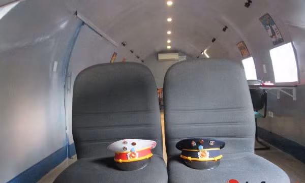 Bên trong "máy bay" được trang trí bằng tranh giấy ép.