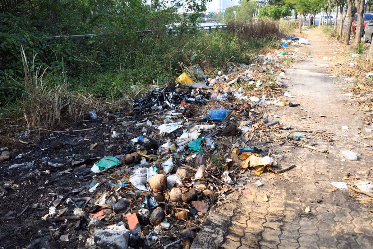 Dọc đường Đào Trí (phường Phú Thuận), những đống rác tự phát nhỏ lẻ men theo ven đường, tồn tại kéo dài mà chưa được xử lý triệt để.Cũng trên đoạn Đào Trí, tại chân cầu Bà Bướm, chăn, ga, gối nệm cũ bị vứt bỏ ngổn ngang.Di chuyển về hướng đại lộ Nguyễn Văn Linh, đoạn chân cầu Ông Bé hướng về Bình Chánh, một “dải rác” dài khoảng 500 m ngay bên vệ đường đã tồn tại từ nhiều năm nay.Bãi rác không còn là điểm phát sinh nhỏ lẻ mà đã trở thành một “khối tồn lưu” khổng lồ, phơi bày giữa dòng xe cộ tấp nập, tại tuyến Nguyễn Văn Linh.Không chỉ ở các tuyến đường lớn, tại khu vực đường Nguyễn Duy (phường Chánh Hưng), sau khi giải phóng mặt bằng bờ Bắc kênh Đôi, những khoảng đất trống ngổn ngang gạch đá nhanh chóng biến thành nơi tập kết rác tự phát.