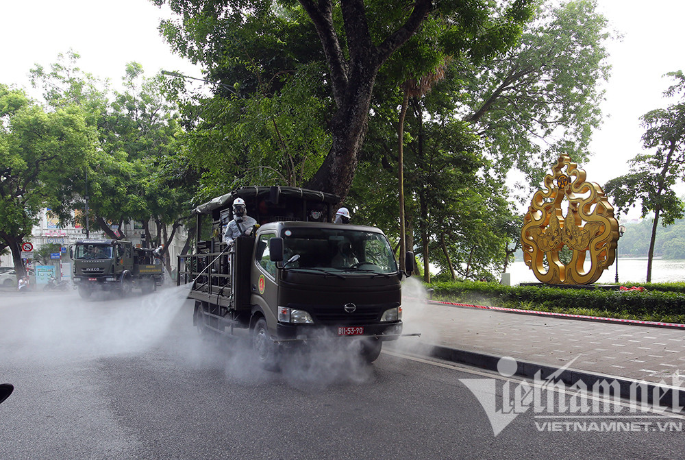 Trong những ngày giãn cách, lực lượng quân đội triển khai phun khử khuẩn ở nhiều nơi. Ngày 26/7 tiến hành phun khử khuẩn quanh hồ Gươm và 10 phường phố cổ quận Hoàn Kiếm.